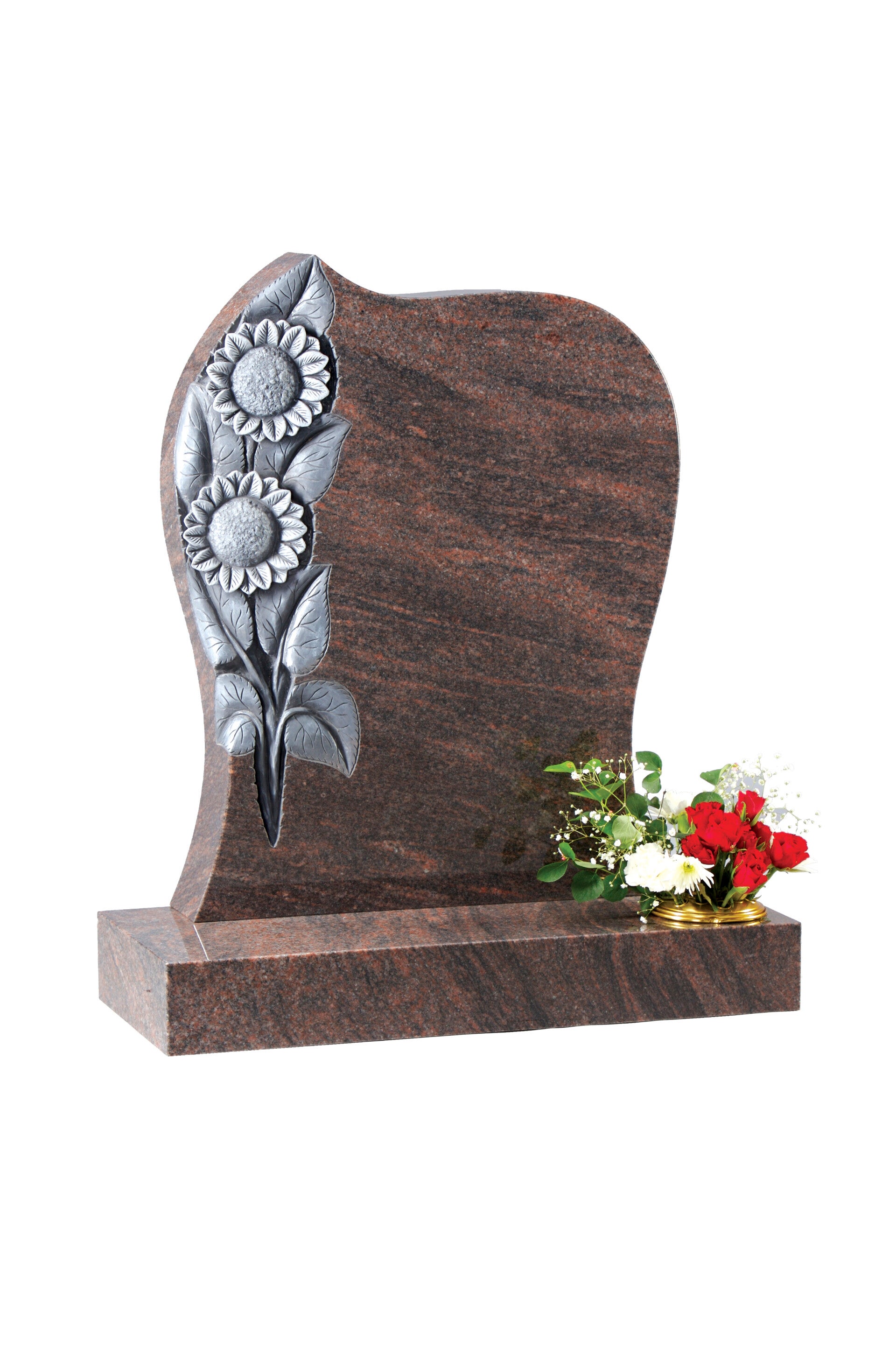 Carved sunflowers teardrop shaped polished headstone